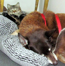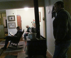 good friends by the wood burning stove. |