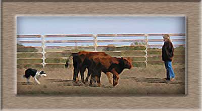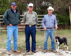Joe and Hoss Hopping of Coweta, Oklahoma Joe and Hoss came to visit and watch Ben work dogs October 4th. We had a great time talking dogs and getting acquainted. They run pairs and yearlings and even a few sheep for weed control. They have been using dogs in their operation for 6 or 7 years, Border Collies and Kelpies. They even recognized "Angel" our guardian dog as part Komondor which is a guardian breed they use. They were able to share supper with us. The evening went much too quickly with them driving home very late. |