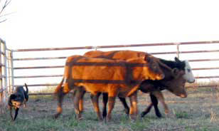 Ben working Joe and Hoss' Tuffy dog for them. Tuffy will sure enough "turn 'em around." |