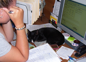 Above left the new office cat, Tiny Hiney helping AVCA secretary