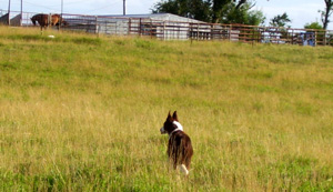 Oakley worked his line of McNab Cross cattle dogs. His