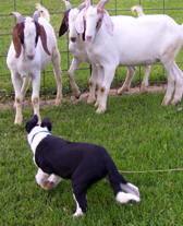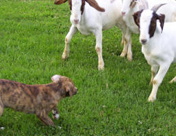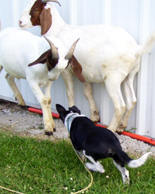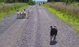 in the pasture. Right - Lena drives some wayward goats home. They