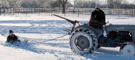 Jamie and Lisa Martin family have fun in the snow. Lena
